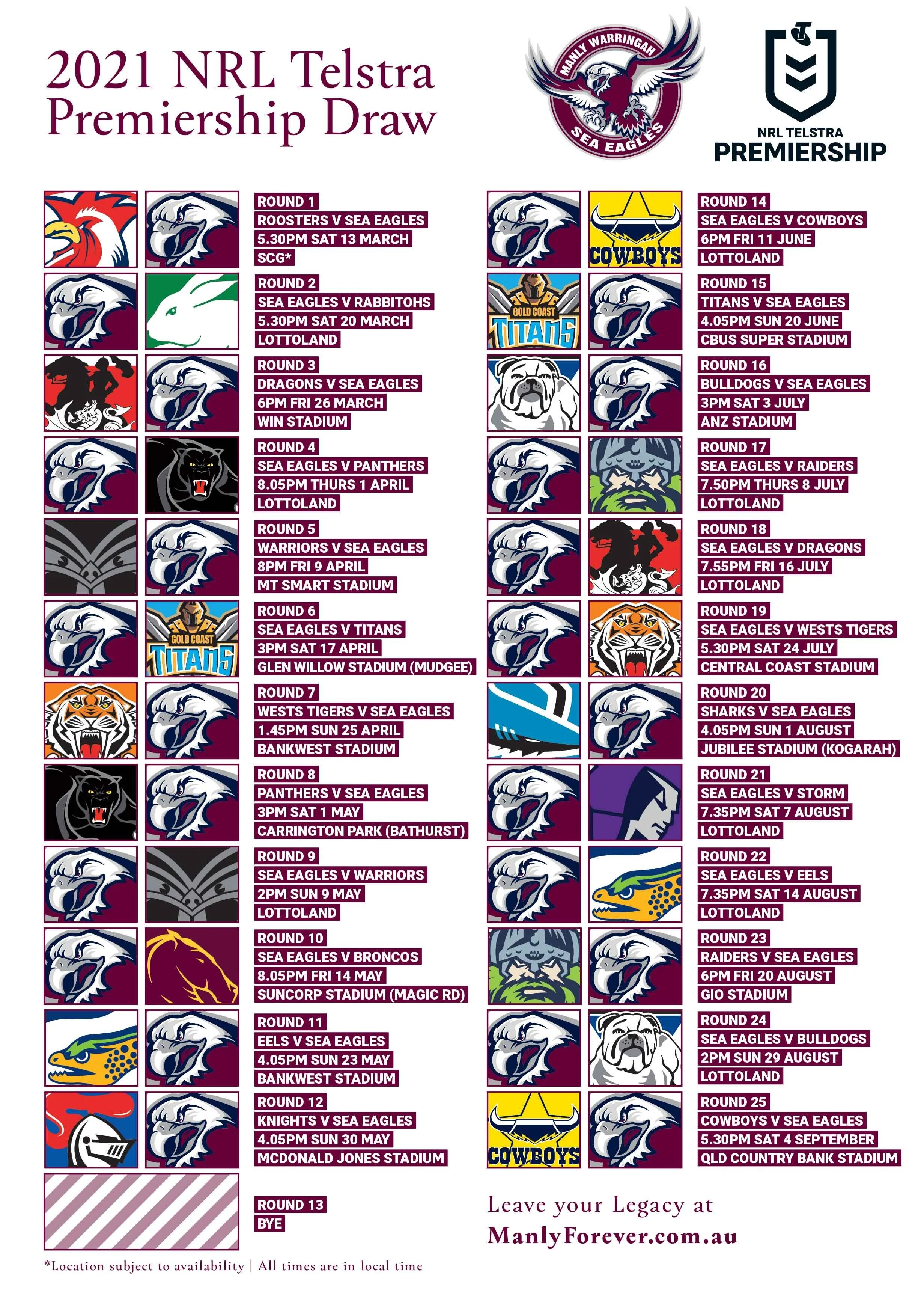 Sea Eagles Draw Released For 2021 Nrl Season Sea Eagles